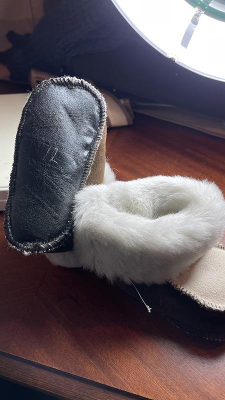 Хутряні уги, можуть бути, як тапочки або зимове взуття для малюка який ще не ходить. Біле товсте хутро ззовні та всередині. Розмір 12 Ззовні замша