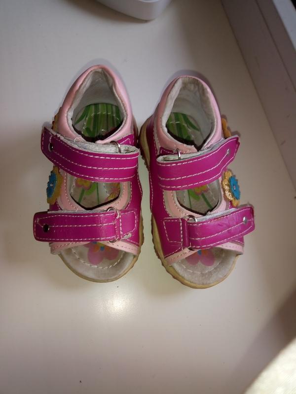 Босоножки с кожаной стелькой с супинатором. Обували пару раз, оказались немного малы. По стельке 14 см.