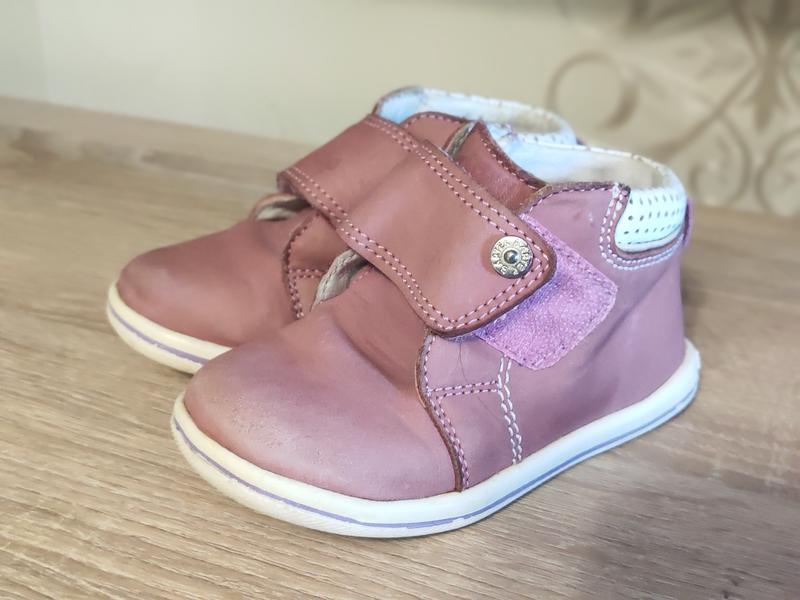 Кожаные, легенькие ботиночки на девочку. Удобно застегиваются, комфортно ножке. Нам очень нравились. Стелька 12.7 см