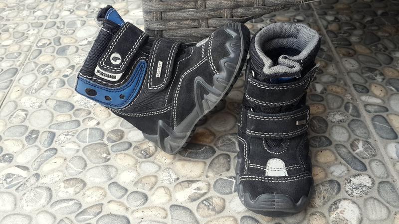 Сапожки Primigi 20 размер. Стелька 13 см. Подойдут на стопу 12-12,5 см. Выполнены из натур. замши черного цвета. Мембрана Gore-tex обеспечивает максимальный комфорт ноги в любую погоду. Не промокают. Температурный режим от 10 до -20 Защелкиваются на липучки. На фото цвет засветлен, в живую насыщенно-черные. Легкие и удобные. Качество не уступает эссе. Состояние отличное. Ношени очень мало, поэтому без дефектов. перешлю