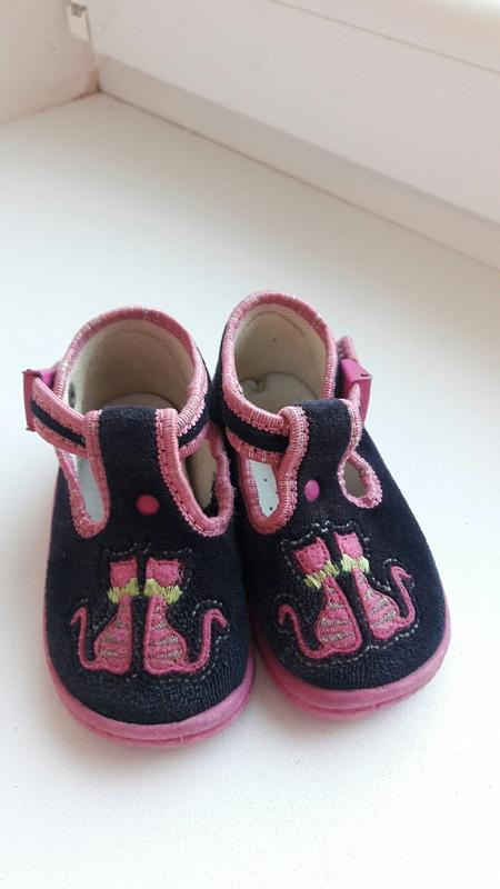 Текстильные туфельки на девочку с кожаной ортопедической стелькой. Размер 18, длина стельки 11,5 см. Материал: велюр. Дефект: немного облезла краска на застёжках.