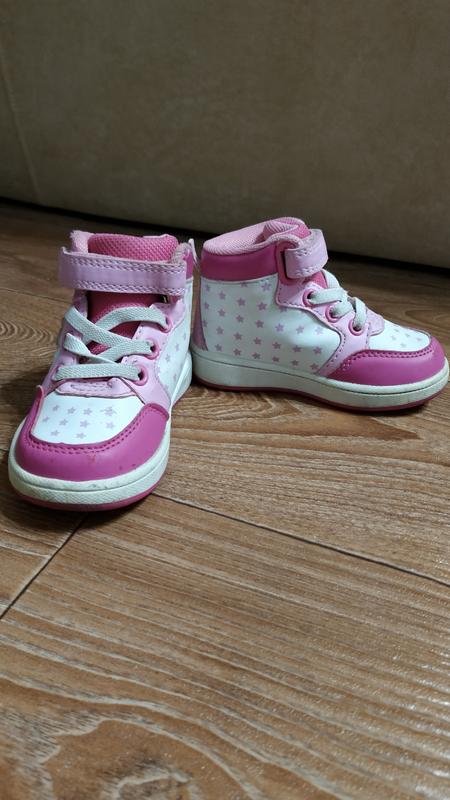 Высокие кросовочки для девочки. Очень удобные, плотно сидят на ножке. Состояние очень хорошее, на последнем фото видно немного сбитые носочки, почти не заметно. Длинна по подошве 14.5 см. Дополнительные фото и замеры по запросу.