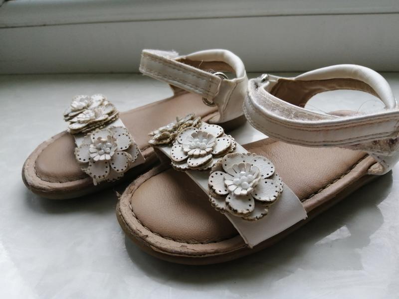 Босоніжки в чудовому стані,на ножці дивляться гарно,ліпучки супер.На худеньку ніжку.З дефектів:носики трішки пошкоджені,на фото видно.Устілочка 13см.