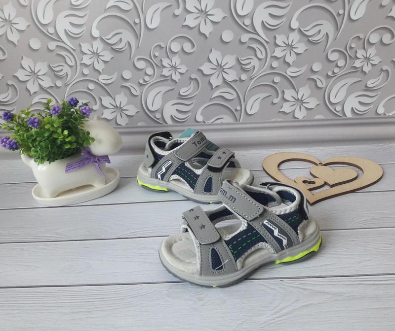 Лёгенькие босоножки для быстрых мальчиков- ТОМ М. Верх - эко-кожа, внутри- стелька кожа, супинатор. Очень мягкие, подошва гнётся.Качество отличное 21 р - 13, 6 см 22 р. - 14,2 см. 34т