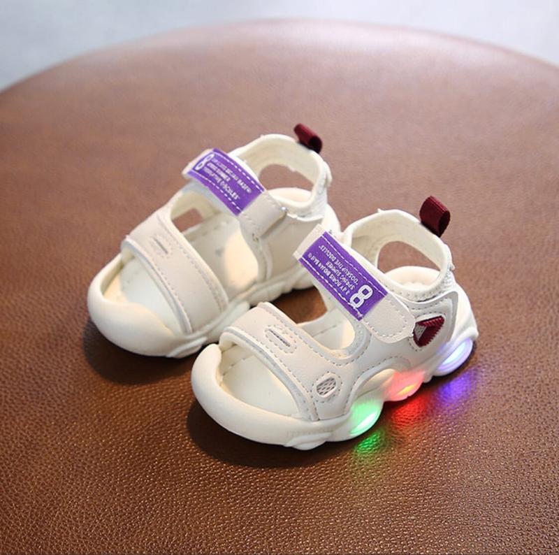 Стильные легкие сандалики Мигающие Мягкие , Гибкие Застежка липучка Защита пальчиков Замеры делались от края до края Учитывайте запас 18-14см 19-14.3см 21-13.5см 22-14.5см 24-15.5см 25-16см 43#