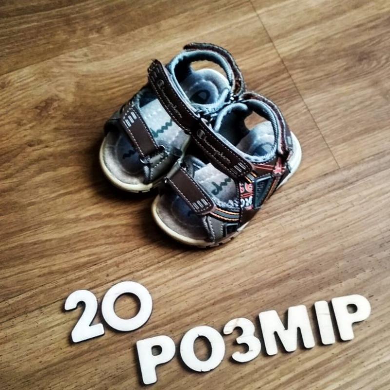 Сандалі на липучках, зручна підошва, супінатор. Довжина устілки 12.5см.( 9-12міс.) Якість висока. Незначні подряпини біля застібки. Перші кроки будуть в радість!