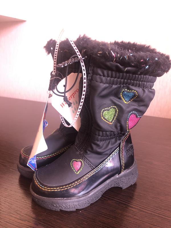 Нові сапожки англійського бренду гарної якості, прекрасно в дощ. Утеплені, всередині штучне хутро, устілка тепла. Проліт з розміром. Розмір вказано 5, довжина устілки приблизно 12-12,5 см.