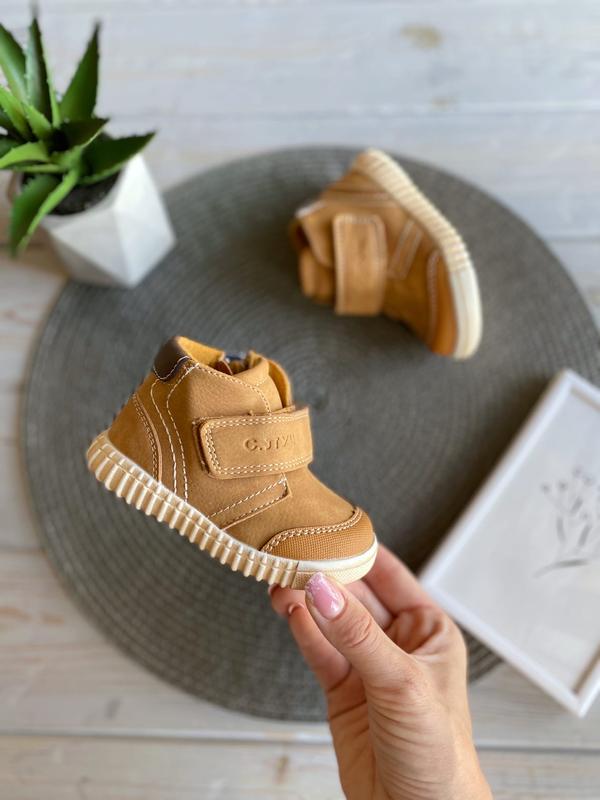 Деми ботиночки для самых маленьких Верх экокожа, внутри утеплены флисом Стелька кожа, есть супинатор Носочки защищены 👌🏻 Фиксация широкой липучкой, присутствует боковой замочек 20-12,6 см 21-13,2 см 22-14 см 2 пары 23-14,7 см