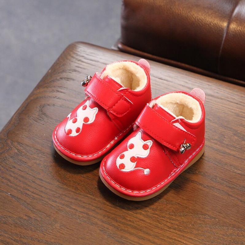 Милые туфли малышкам Утеплены мехом Сезон осень Застежка липучка Легкие,удобные Пищалка на подошве 15-10.5см 43#