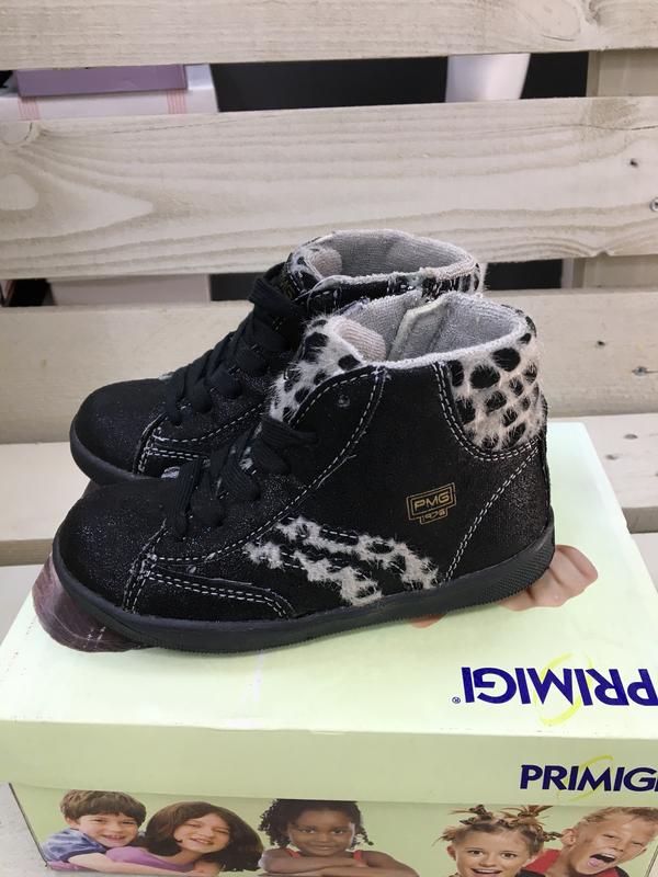 Очень стильно смотрится на ножке. Подойдут на осень, утеплены и гипоаллергенные. Качество супер, Италия. Фирма Primigi. Cтелька кожаная. В комплекте серые шнурки. Размер {21, 25, 25} По стельке: 21 размер - 13 см 25 размер - 16 см