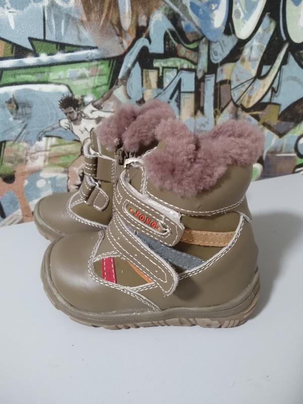 Зимние ботинки на мальчика. Вставки кожа. Мех натуральный. По стельке 13.5см.