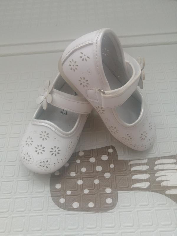 Продам біленькі туфельки для дівчинки. Одягли на 1 час на фотосесію. Стан нових. Розмір 20. Шкіряна устілка.