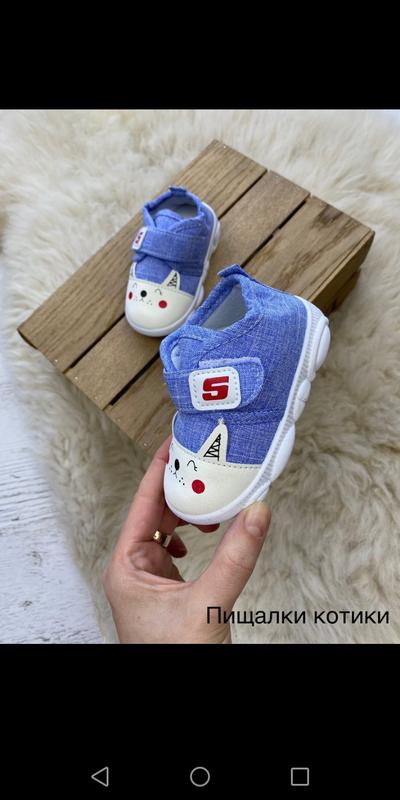 ✔ Первая обувь Вашего малыша! Мягенькие, легенькие текстильные кроссовки- тапули- пищалки. Звук - можно убрать) Подошва-резина, стелька текстиль, на липучке. ✔ Размеры: 16-11,8 17-12,5 18-12,7 19-12,9 20-13,7 21-13,9 *допустимая погрешность +-2мм. ✔ Цена: 195 грн