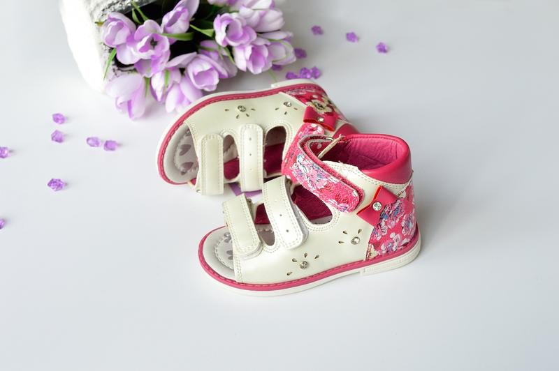 Босоножки Тom.m. Цвет белый с малиново-цветочными вставками. Высокий твердый задник. Каблук ТОМАСА. Ортопедические профилактические. Застегиваются на три липучки, которые позволяют регулировать обхват и подъем ножки. Стелька кожаная с супинатором. Супер цена на последний размер. 280грн 21р. - 14,1см (13,1см) (2шт) Замеры сделаны по стельке лично мной, погрешность 1-2мм допустима. Первое значение - замер по стельке от края до края, без кантика. В скобках указан замер до строчки. УП за счет получателя +3грн упак.мат. НП оплата за доставку при получении.