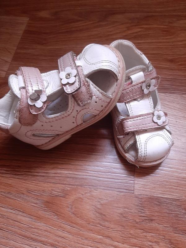 Взуття для меленької леді. Підійде і під сукню і для прогулянок. Взуття має шкіряну устілку з супінотором та тверду п'ятку. Також для зручності є дві застібки для потрібної посадки ножки. Недоліки та довжина устілки показано на фото. Розмір 21