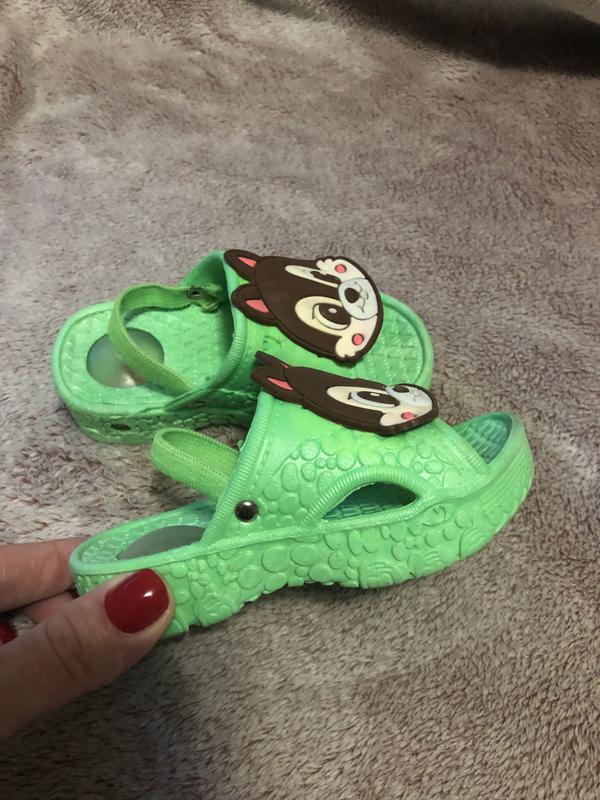 Шльопанці для малюка, розмір вказано 21-22, при ходьбі пищать, стан відмінний, легенькі, легко миються.