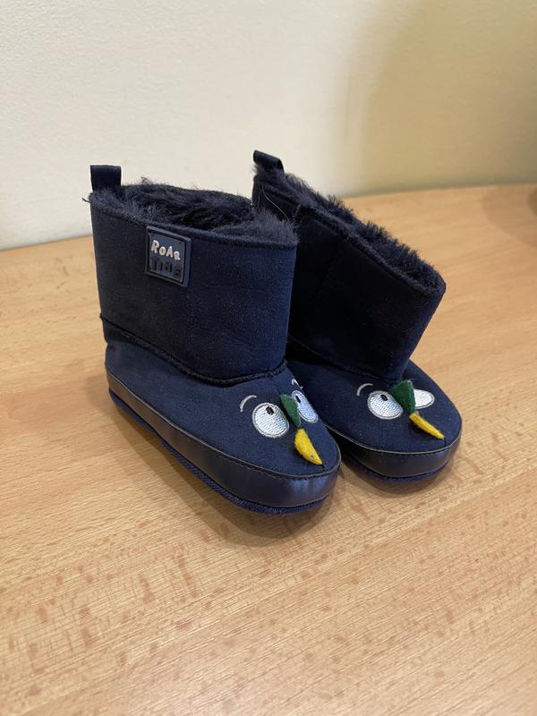 Тёплые пинетки.Одевали пару раз,есть дефект (фото) липучка немного оторвана.Так состояние идеальное.