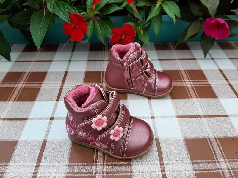 Цвет: розовый перламутровый очень красивый с отливом Материал внутренний: флисовая стелька с супинатором + подкладка флис- велюр Материал внешний: кожа и магкая экокожа. Ботинки прекрасно фиксируются на ножке благодаря регулировке полноты липучками. Сбоку есть змейка Подойдут на высокий подъем и на стандартную ножку. 18р.по стельке 11.5см 21р.по стельке 13. см
