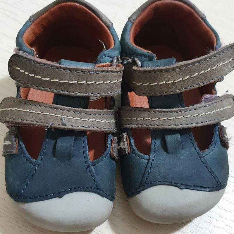 Полностью кожаные сандалии с резиновыми носочками. Очень мягкие и удобные идеальны для первых шагов. Липучки в идеальном состоянии. Из нюансов - обрезана кожаная полосочка. Она не регулировалась и очень давила ребенку. Даже без неё внешний вид не портится. Допфото и замеры сделаю.