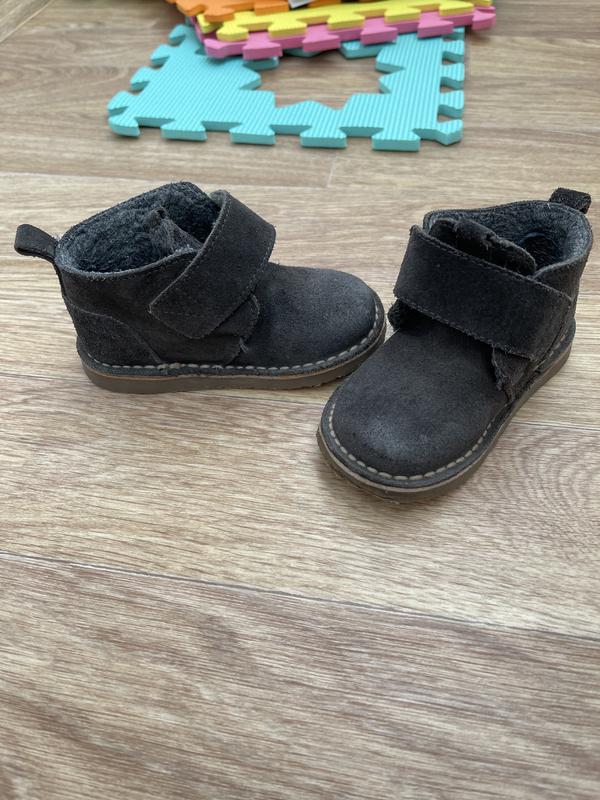 Ботинки в очень хорошем состоянии. Натуральный замш. Ребёнку было очень удобно в них. Носили осенью. Стелька 13,5 см. Очень удобная и красивая модель. Мы относили уже вторую пару.