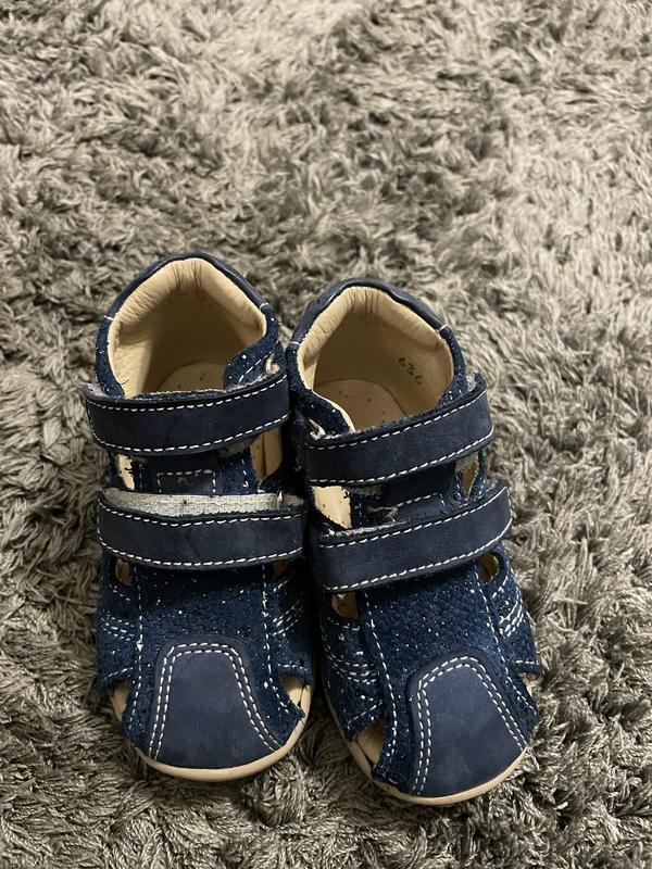 ортопедичні сандалі із закритим носком. З натуральної шкіри. З супінатором На вулиці не носили. Тільки вдома. Все ціле і в ідеальному стані. На липучках що дуже зручно. 11,6 см Якщо потрібно детальніші фото скину, мені не жалко :)
