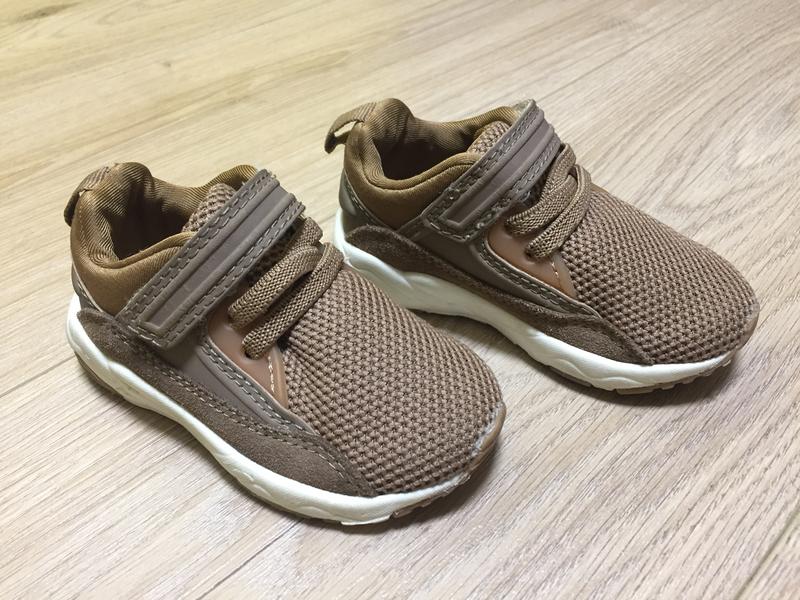 Кроссовки Next 20,5 см по бирке. коричневого цвета, вместо шнуровки резиночки и липучка. Легкие и удобные, актуальная модель на все времена. Стан - идеальный. Обувались считанные разы, очень аккуратно, предпочтительно в коляске.