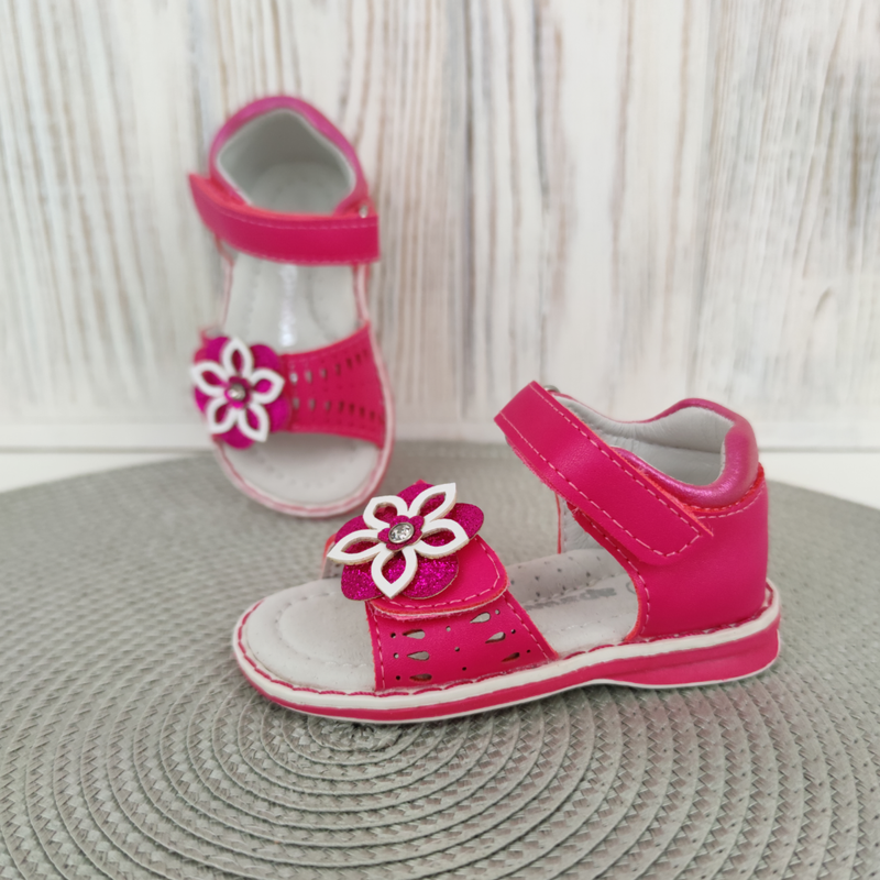 Босоніжки від TM Apawwa ♥️ Устілка шкіряна з супінатором. Фіксуються двома липучками. Твердий задник. Легенькі. Розміри: 18-11,5 см 19-12,1 см 21-13,4 см 22-14,2 см 23-14,8 см