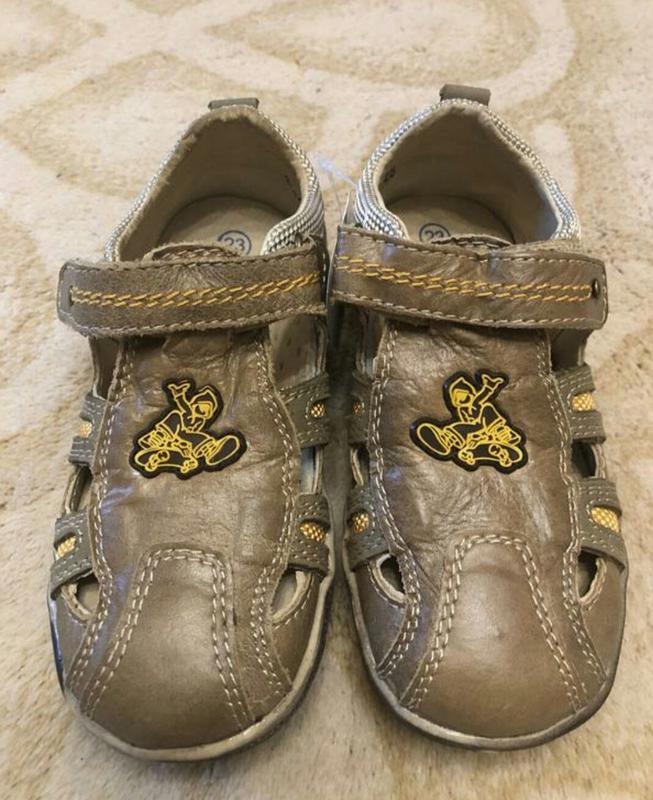 Детские босоножки на мальчика или на девочку приятного светлокоричневого цвета. Кожа. Новые. Коробки нет. Купили без примерки, оказались маленькие. Вероятно на ножку с невысоким подъёмом. Стелька 13,5см