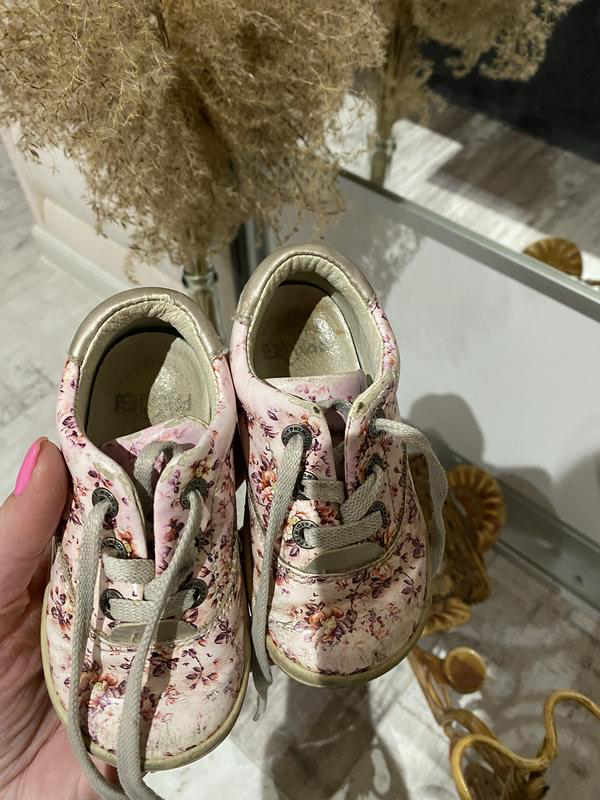Фото на тілі нема Застібається на шнуроаки Шкіряні Принт квітковий Зручні підійде на виріст на розмір 19-21 Стелька 13 см) Висота чобота 5,2 см) Ширина підошви 6,5 см) Із нюансів -є забруднення і потертість,на фото вказано,у ціні враховано,продається так як є без повернення)