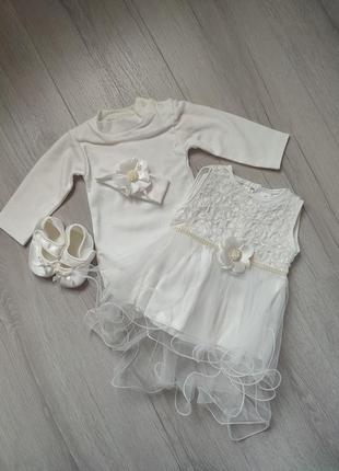 набор для крестины на девочку. в наборе идет боди, платье, тапки, повязка на голову.