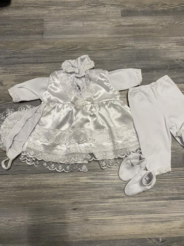 Набор на девочку платья, кофточка, штанишки шапочка пинетки в хорошем состоянии
