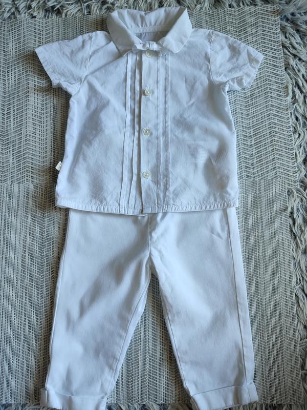 праздничный, белоснежный костюм для крещения мальчика по бирке 3-6 мес замеры : рубашка длина 29 см ширина 24 см брюки: длина 38 см, шаг 20 см, пояс 19 см тянется жилет ширина 25 см длина 22 см