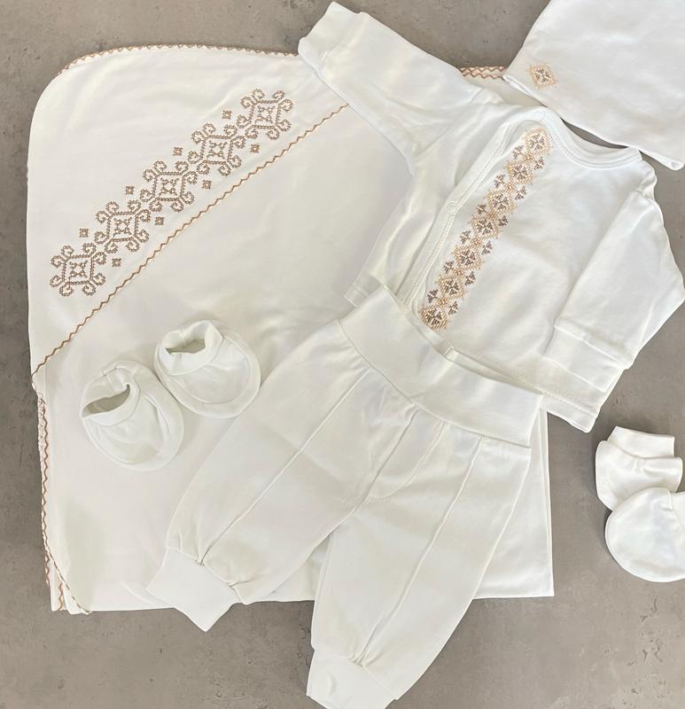 Крыжма и одежда для крещения младенца 56 размер Идеальное состояние Комплект крижма Шапочка царапки штанишки и верх
