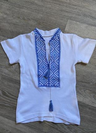 Вишиванка дитяча. Хлопок + синтетика . Тягнеться . Стан хороший , але на спинці є дефект ( дивись фото) Довжина 37см Плечі - 24 см Грудь - 23 см Рукавчик 11 см Плече 6 см