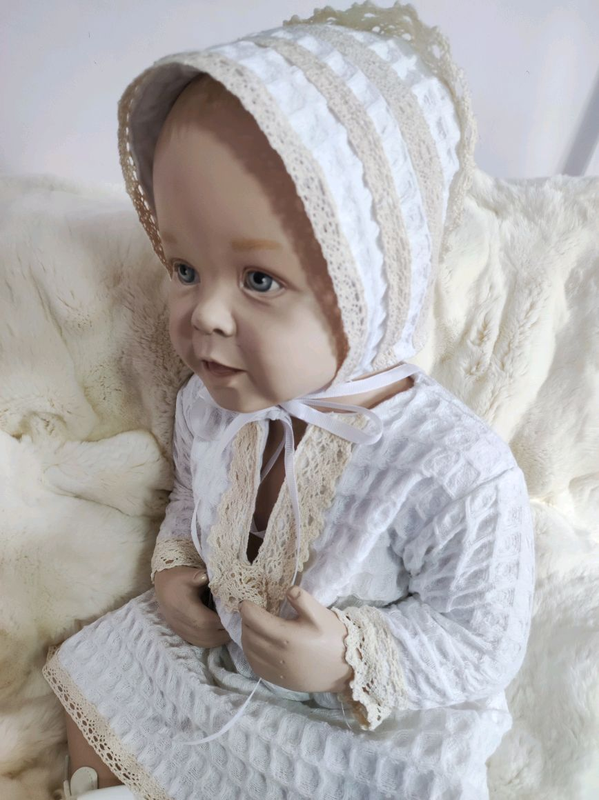 Тип виробу: Сорочки Сорочка з бавовняного полотна піке,бавовна 100% чепчик та сорочка оздоблені мереживом з бавовни Довжина-45 пог-25,5 ширина низу-35 рукав-18,5