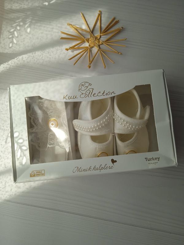 🎁 Невероятно красивый, нежный и волшебный комплект для крестов, выписки или подарка на праздник🎀 🧶 Размер: 0-4 мес В комплект входить: ✨ Нежные пинетки с бусинами или цветами ✨ Очень мягкая и эластичная повязка, с украшениями как на пинетке