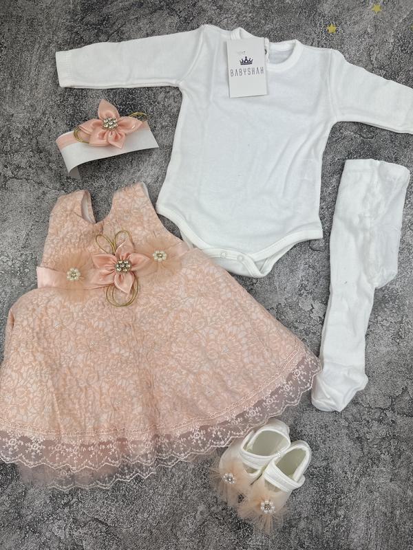 Набір для дівчинки святковий комплект для хрещення і виписки комплект 0-4 місяці 4 предмет...