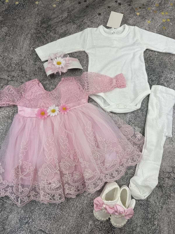 Набор для девочки праздничный комплект для крещения и выписка комплект 0-4 месяца 4 предме...