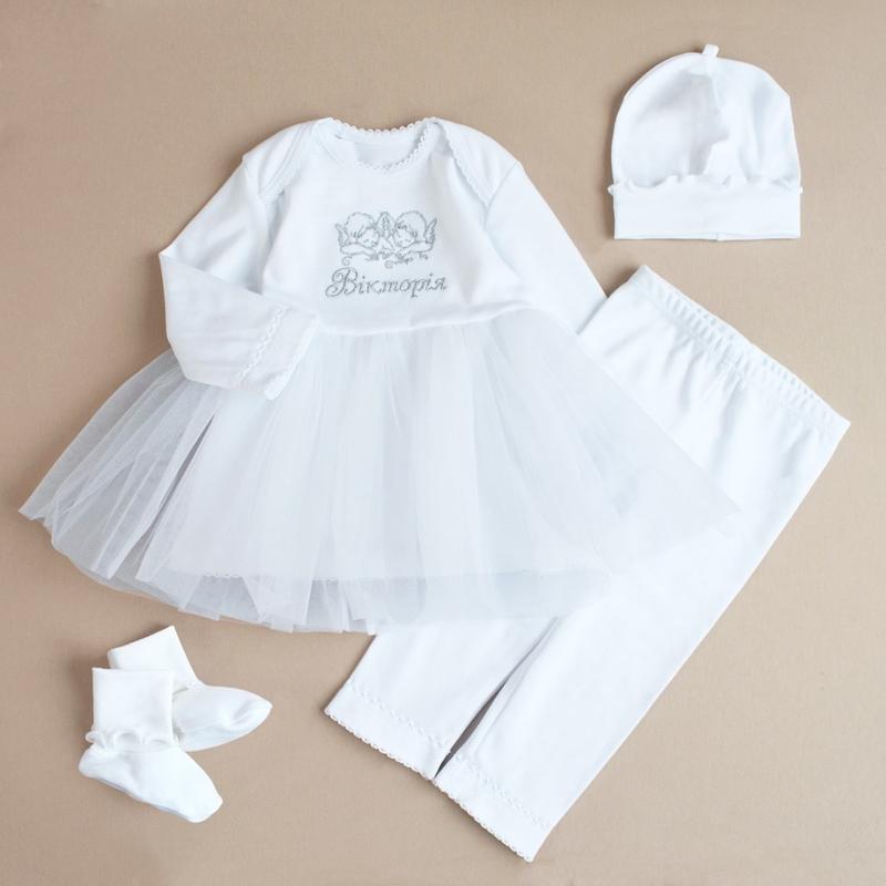 Плаття для хрещення дівчинки з іменем та вишитими агелами. Ціна залежить від розміру 👇 18 (зріст 56 см) 0-1 м - 850 грн; 20 (зріст 62 см) 1-3 м - 850 грн; 22 (зріст 68 см) 3-6 м - 900 грн; 24 (зріст 74 см) 6-9 м - 950 грн; 26 (зріст 80 см) 9-12 м - 1000 грн. * Є заміри, дивіться останнє фото 📩 У набір входить все необхідне: плаття, лосіни, шапочка та пінетки. Пошитий з натурального матеріалу інтерлок, бавовна 100%. Пишна сукня з поєднанням євросітки виглядає дуже ніжно і повітряно. Плечики закладаються одне на одне і виріз на горловині є достатньо великим для легкого одягання через голову. Верхній слой спіднички — мягкий фатин (ПЕ 100%). Модель пошита так, що фатин не торкається тіла дитини. По даній моделі потрібна 100% передоплата. На платті може бути вишите будь-яке ім'я. Кольори ниток на Ваш вибір, як правило, це срібний або золотий. Низ вишивки заклеєний спеціальною захисною тканиною. ❗Обов'язково уточнюйте наявність в повідомленнях 📩 ____________________________________ ✔️Відправка: Нова Пошта, Укрпошта. ✔️ Оплата: 💰100% продавцю на карту. ____________________________________ Термін відправки 1-3 робочих днів. Сб-нд не робочі дні. Залишилися питання? Пишіть, відповімо з радістю!