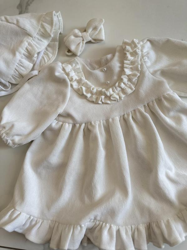 Идеальное платье для крещения, материал вельвет Размер 56.62 Также в комплект входит повязка и чепчик