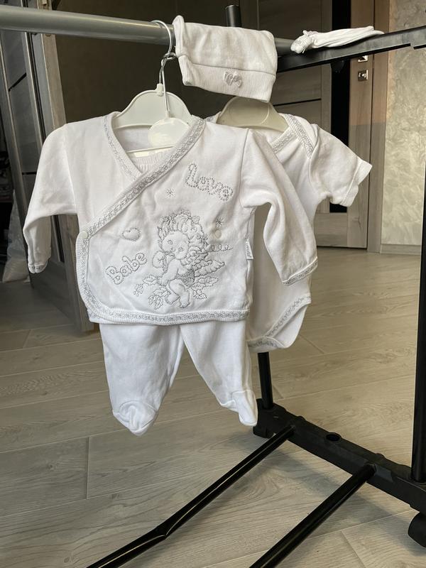 Набір для хрещення ( боді, штанці, кофтинка, шапка, царапки ). Розмір не вказано, підійде на 2-3 місяці.