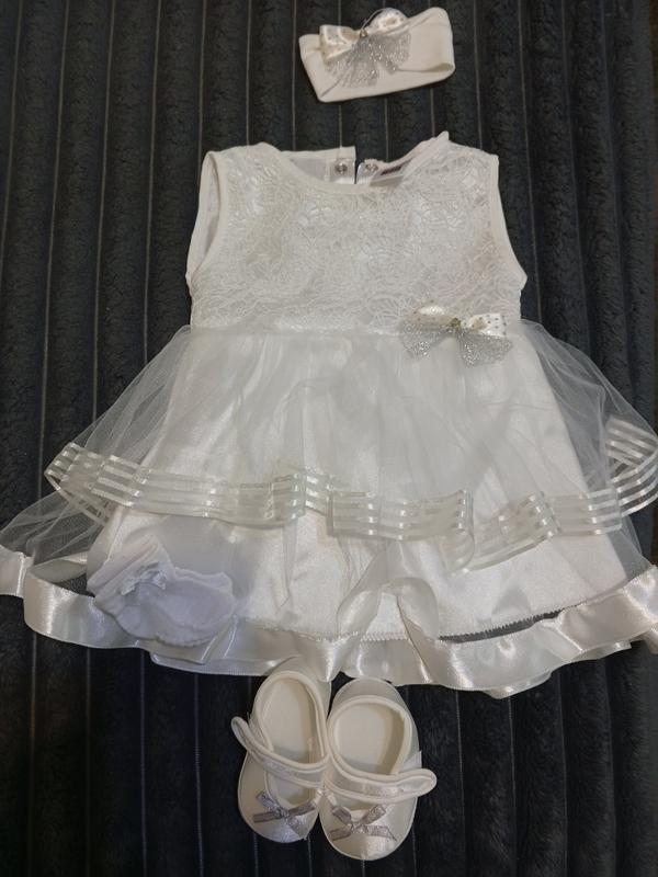 Платье для крещения с повязкой га годовую,пинетками, носочками. 62 размер