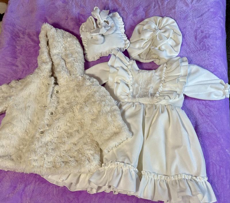 Набір для хрещення, розмір 74-80 Матеріал вельвет в рубчик (з підкладом, ідеально на прохолодну погоду) В набір входить шубка, сукня, шапочка(44-46), пінетки(12,5 см) та подушечка для хрестика