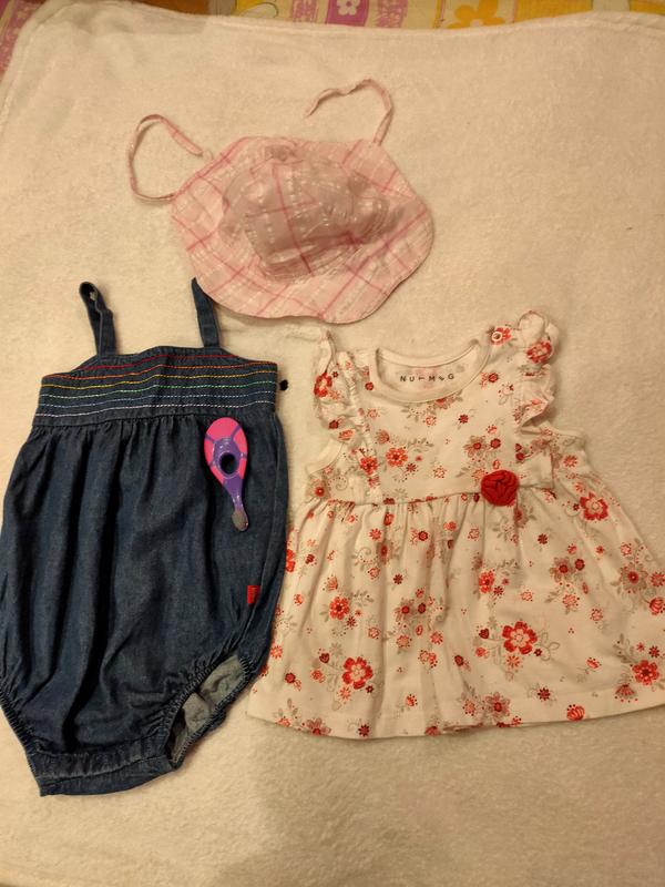 Бодик летний, джинсовый для девочки,6-9 мес. Платье,панамка в комплекте. Грызульку-щеточку подарю. Бодик: Длина-47 ПОГ-24 Платье: Длина-33 ПОГ-25
