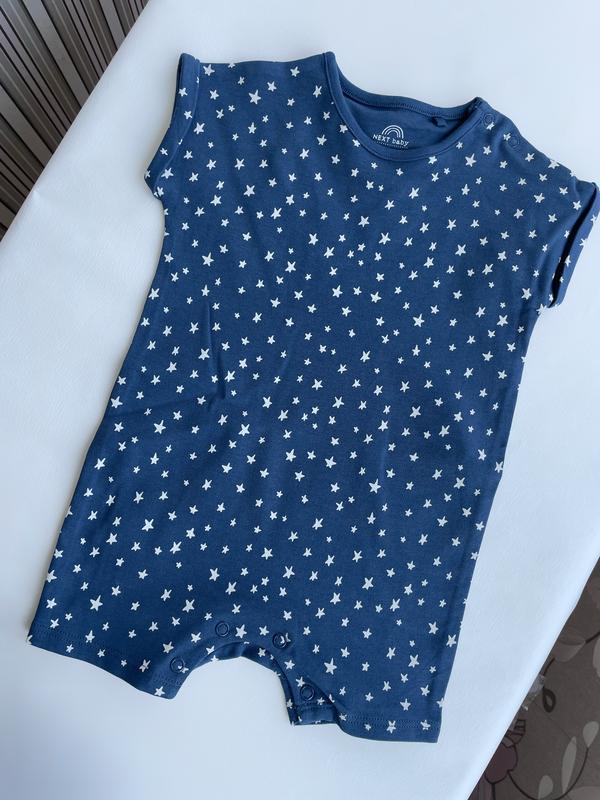 В наличии🤍 Стильный ромпер🧢 🏷️ 315 грн ▫️короткий рукавчик ▫️надм‘яка тканина ▫️застежка без никеля для легкого одевания ▫️звездный принт Так удобно для непоседливых младенцев, не надо придумывать ничего лишнего для цельного образа💙 Состав ⁇ 100% хлопок Производитель ⁇ Великобритания ⁇ Next Размер: ▫️68-74 (6-9 месяцев) тон, что выбираете нас🤍