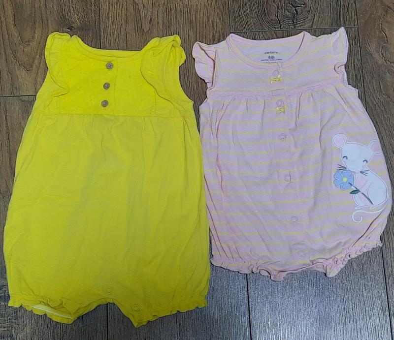 Пісочники Carter's, бірка 6 міс., можна й раніше. В ідеальному стані, одягнуті по разу для фото. На жаль, переросли( Купували пісочники новими, збережена паперова бірка. Заміри жовтого: довжина до кнопок 36 см, загальна довжина 40 см, ширина по середині 31 см. Заміри рожевого зроблю по запиту. Фото на дитині- надам в приват. Ціна в оголошенні вказана за один пісочник! зараз новий такий пісосник коштує від 350 грн.! Пересилаю по Україні Укрпоштою або Новою поштою, є безкоштовна олх-доставка.