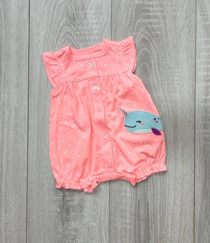 Яркие и удобные песочники для девочек. Нежно розового цвета с нашивкой нарвала сбоку. Застегивается на кнопки по всей длине и снизу кнопки для смены памперса. Состав: 100% хлопок. размер NB на рост до 55 см Carters - детская одежда высокого качества. Ткань не линяет не вытягивается и не выгорает. Рассчитана на продолжительное ношение одежды для Вашего ребенка.