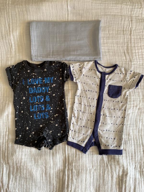 Набор песочников и муслиновая пелена.💙 Смотрите другие вещи, можно собрать комплект одежды до 12 мес. Также есть бесплатные подарки к заказу.