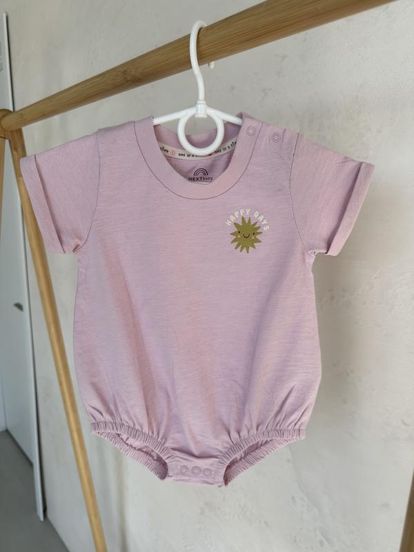 Розовый ромпер для девочки. Размеры в наличии: 3-6 мес., 6-9 мес., 9-12 мес.