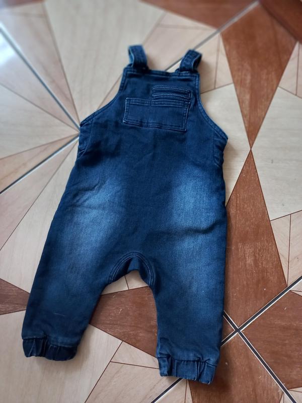качественный детский ромпер, ткань напоминает джинс, но структура в виде трикотажа или двухнитки, сбоков ромпера и на шлейках есть кнопки, что очень удобно при одевании, указанный рост 74см